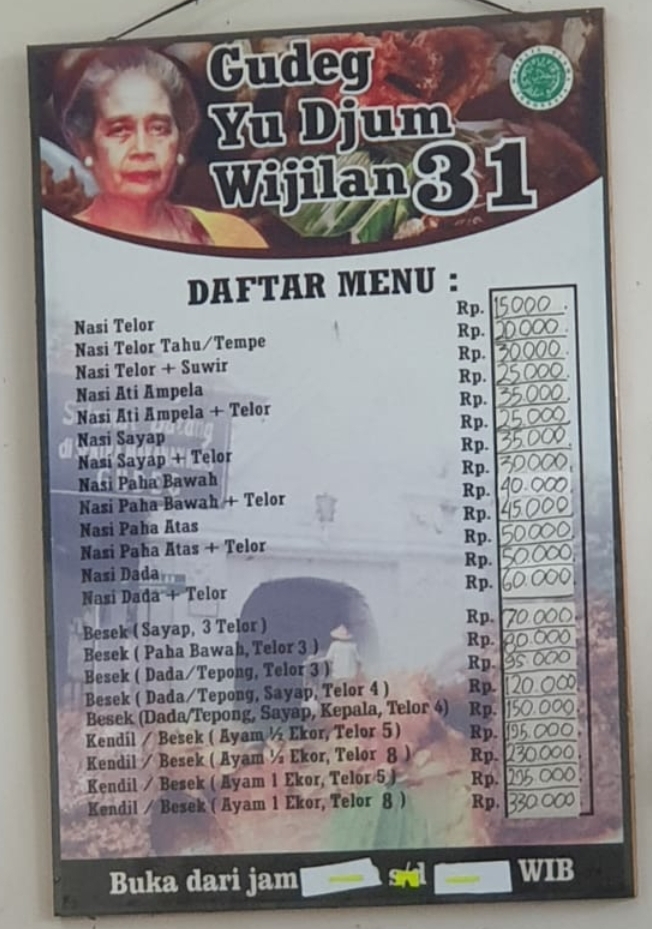 Introducing the Menu at Gudeg Yu Djum